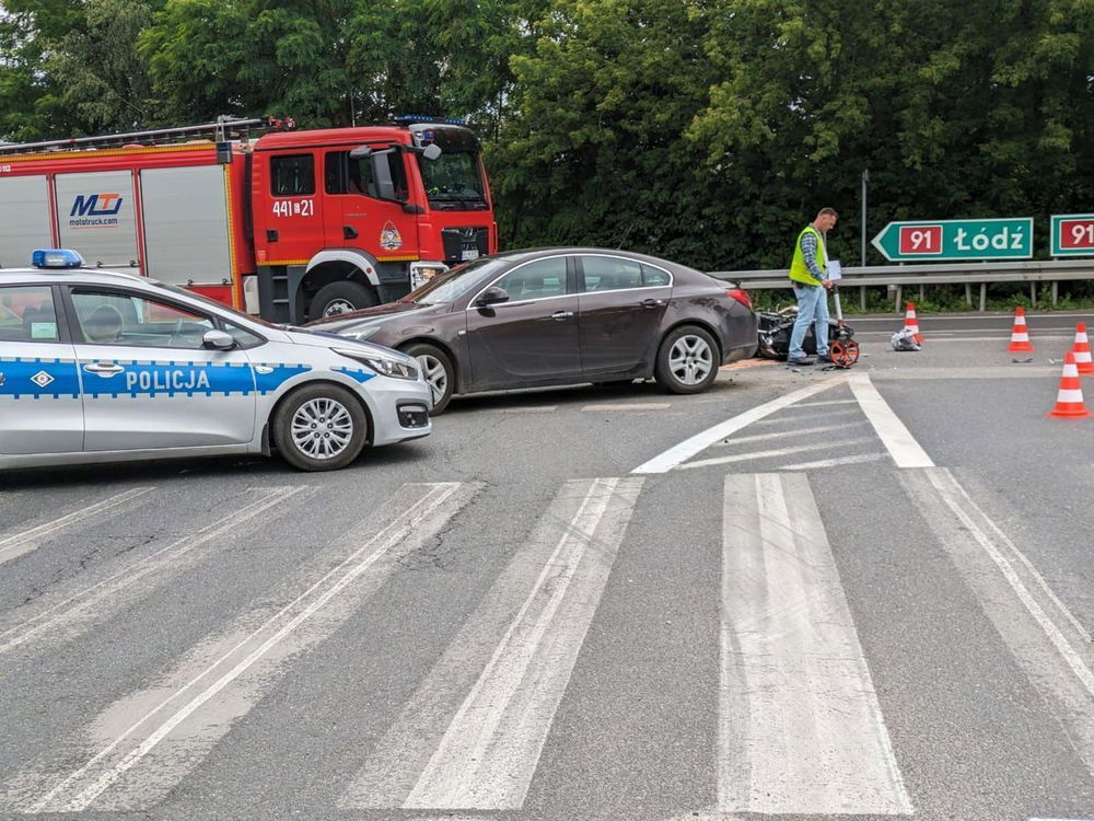 13 czerwca 2024 roku około godziny 12.25 policjanci z łęczyckiej komendy pojechali do miejscowości Topola Królewska, gdzie na skrzyżowaniu dróg krajowych, numer 91 i 60; osobówka zderzyła się z motocyklem. Jak wynika z ustaleń policjantów pracujących na miejscu kierowca opla, 77-letni mieszkaniec powiatu łęczyckiego nie ustąpił pierwszeństwa przejazdu kierującej motocyklem marki suzuki. 39-letnia kobieta, która kierowała jednośladem jechała w kierunku Daszyny. Kierowca osobówki jadąc z przeciwnego kierunku skręcał z drogi krajowej numer 91 w drogę numer 60, kierunek Kutno. Mieszkanka powiatu łęczyckiego, która jechała motocyklem z obrażeniem ciała niezagrażającymi życiu trafił do szpitala. Uczestnicy wypadku byli trzeźwi. Na miejscu pracowały wszystkie służby ratunkowe. Na czas prowadzonych czynności ruch odbywał się wahadłowo. Dokładne okoliczności tego wypadku wyjaśni postępowanie prowadzone przez łęczyckich policjantów pod nadzorem Prokuratury Rejonowej w Łęczycy.